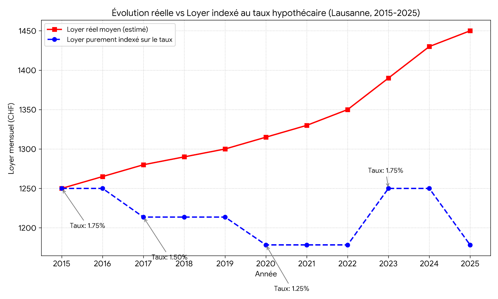 En Suisse, et particulièrement à Lausanne, le logement est devenu le premier poste de dépense des ménages. Pourtant, la loi prévoit un mécanisme clair pour limiter les abus : l’indexation du loyer sur le taux hypothécaire de référence. Mais ce système, basé sur la « responsabilité » du locataire de demander une baisse, montre ses limites.