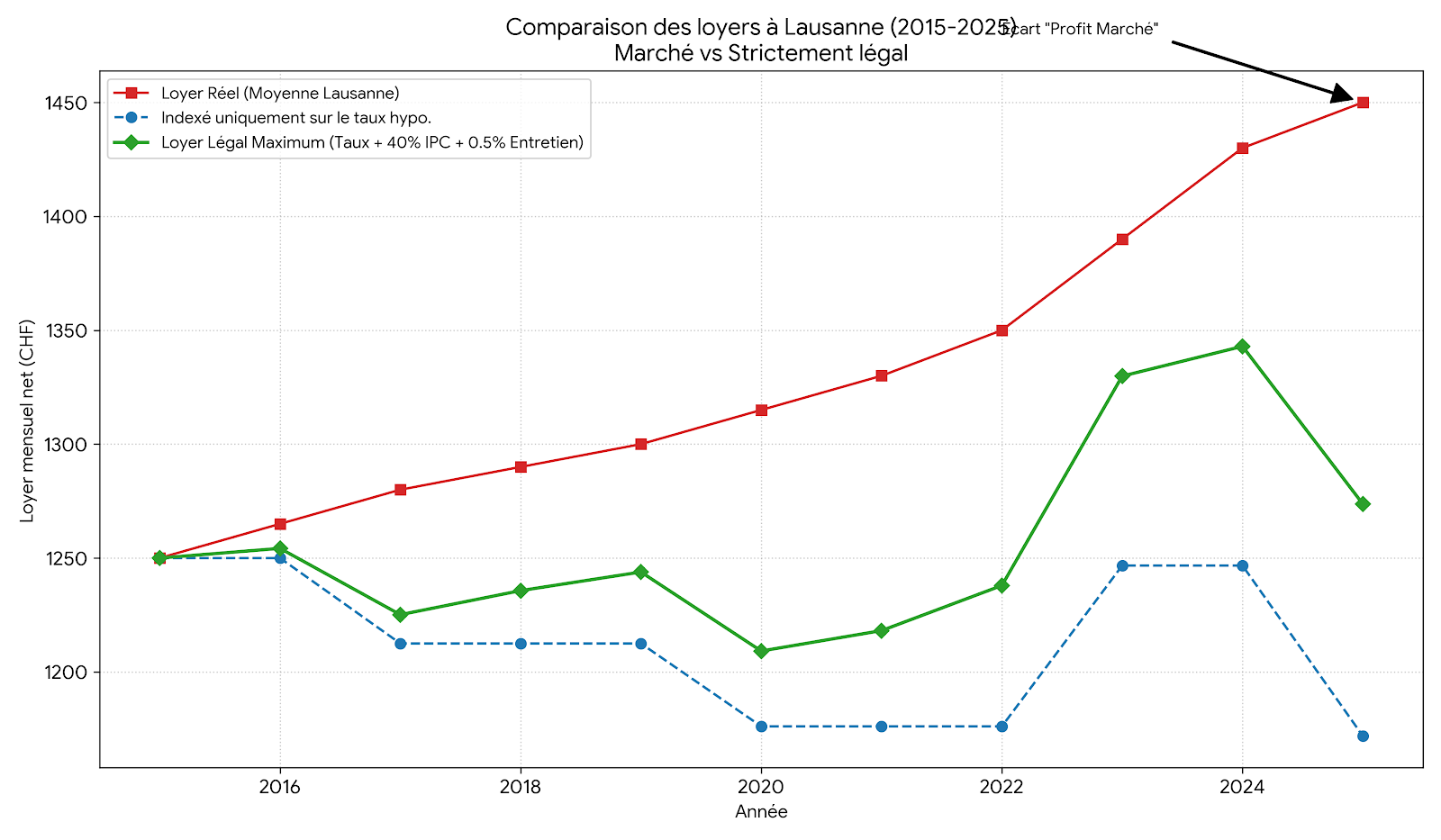 Rien qu’à Lausanne, ces 176 CHF de « surloyer » mensuel moyen représentent, sur un parc de 80 000 logements, un transfert de richesse de près de 170 millions de CHF par an des ménages vers les bailleurs, sans aucune contrepartie en services ou en travaux. Le contrôle automatique supprimerait cette « manne invisible », forçant potentiellement les propriétaires à fonder leur profit sur la gestion réelle et l’amélioration du bâti plutôt que sur l’inertie administrative.